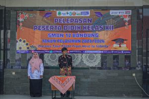 Pada Rabu, 29 Mei 2024, SMAN 12 Bandung menggelar acara pelepasan peserta didik kelas XII Tahun Pelajaran 2023/2024 yang berlangsung khidmat di Lapangan Sekolah. Acara ini dipimpin langsung oleh Kepala Sekolah, Ibu Hj. Enok Nurjanah, M.Pd.I., bersama para Wali Kelas XII. Dengan tema “Mewujudkan Generasi Berprestasi dan Berkarakter Pancasila”, acara ini dihadiri oleh seluruh siswa kelas XII, orang tua, serta jajaran dewan guru.